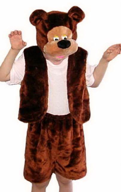 Жилетка и шорты мишки бурого цвета с отливом плюшевой ткани позволят маленькому герою чувствовать себя настоящим царем русской природы. Маска-шапочка выполнена с применением бурого и телесного цветов. Костюм не стесняет движений.