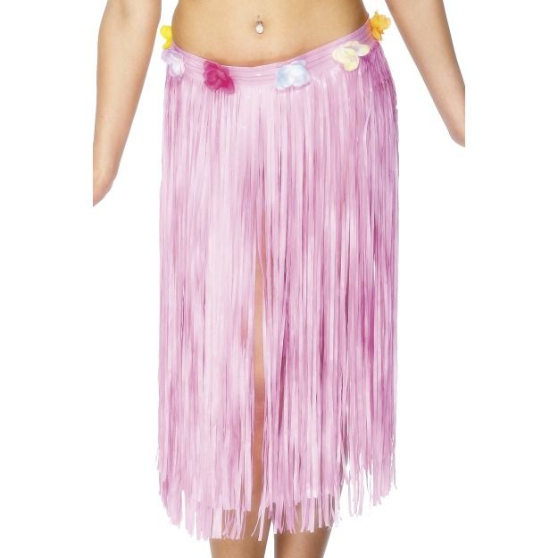 Розовая гавайская юбка станет незаменимой на пляжных вечеринках и прочих подобных мероприятиях. Юбка выполнена в светло-розовом цвете, пояс юбки украшен разноцветными цветочками. К юбке можно подобрать различные гавайские украшения, топ для завершения образа. Длина около 73 см.