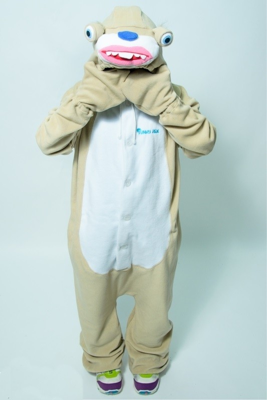 Кигуруми Ленивца Сида выполнен в светло-коричневом цвете с белой вставкой. Кигуруми выполнен из мягкого плюшевого материала. Кигуруми представляет собой образ Ленивца Сида из "Ледникового периода".Спереди застегивается на пуговицы. Капюшон выполнен в виде мордочки Лениваца.