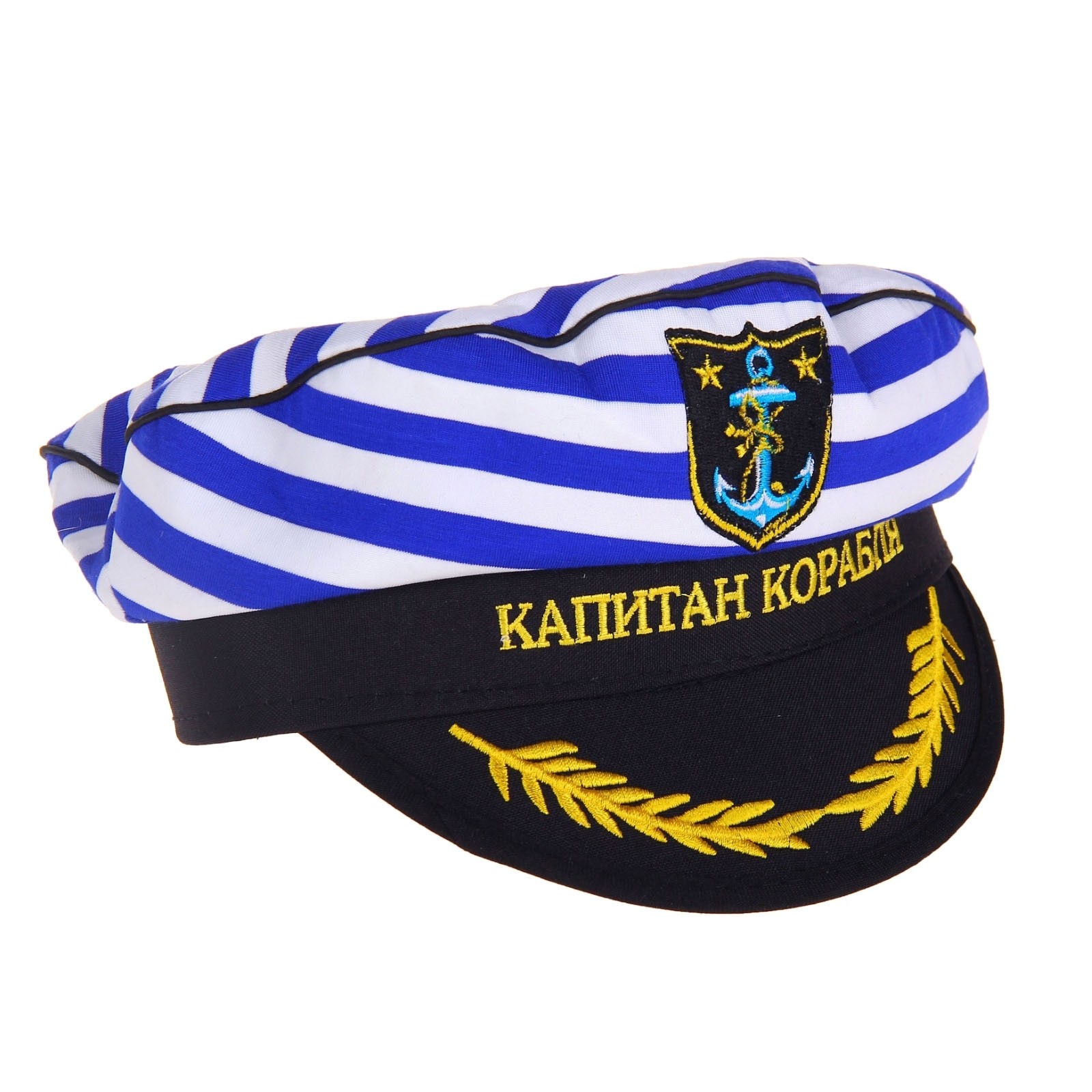 Детская фуражка капитана корабля - полосатая фуражка с черным козырьком, которая отлично подойдет для тематического праздника и утренников.