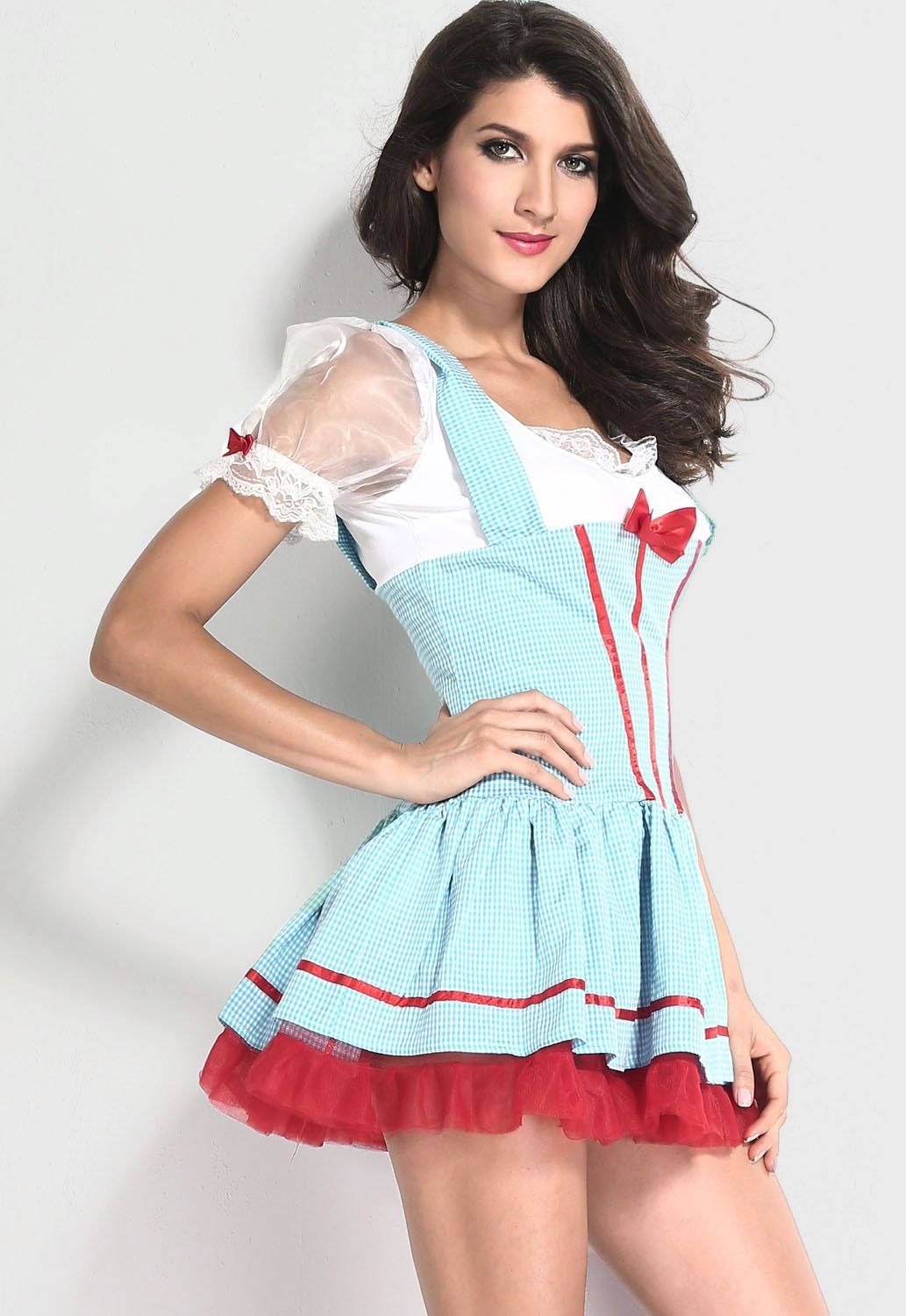 Костюм Девочка Элли состоит из платья, корзинка в комплект не входит. Молния на спине придаёт костюму еще больше сексуальности.