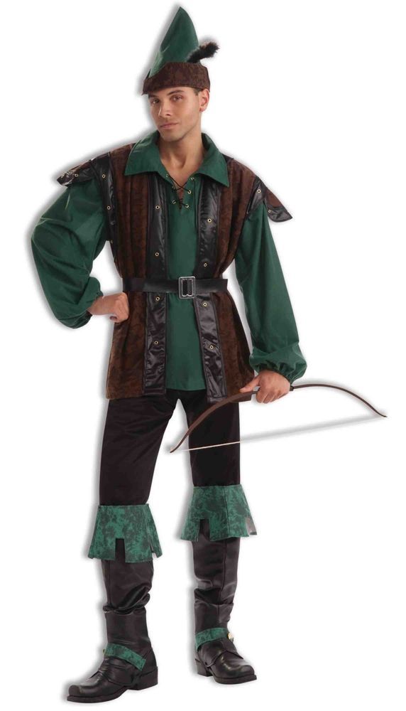 Классический костюм Робин Гуда включает в себя зеленую рубашку с коричневым жилетом и поясом, зеленую шляпу с коричневой отделкой и пером, а также накладки на сапоги черно-зеленого цвета. Этот костюм идеален для различных выступлений, карнавалов и маскарадов.
