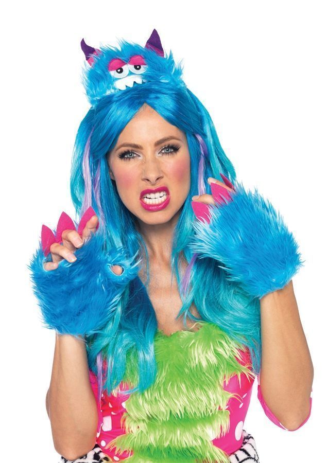 Голубой набор монстрика включает в себя головной убор с мордочкой монстрика и пушистые голубые перчатки без пальцев. Этот милый набор можно надеть на Новогодние праздники, маскарады и различные вечеринки.