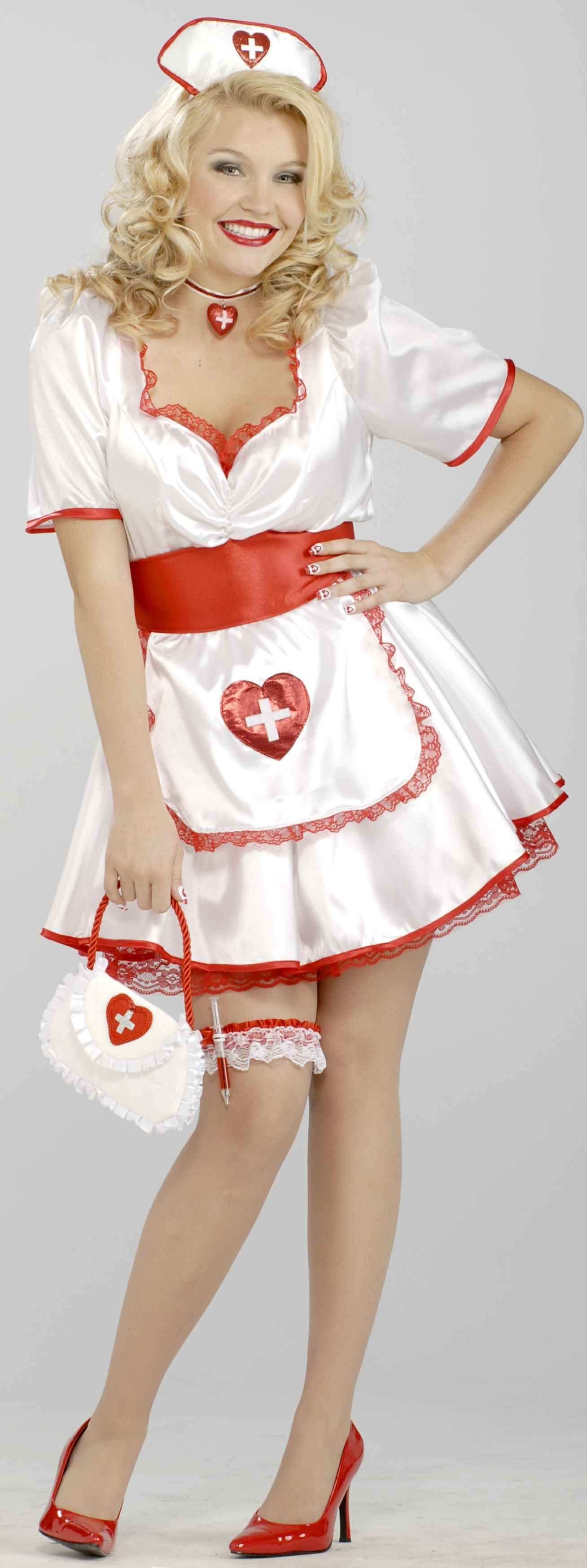 Не подумайте, что это сон, если вдруг увидите медсестру в таком наряде. Это новая униформа для быстрого восстановления больных мужского пола. Рядом с такой красоткой совершенно не хочется быть беспомощным. Костюм заботливой медсестры XL подойдет для костюмированной вечеринки или ролевых игр с партнером. Костюм включает в себя белоснежное платье с яркой красной окантовкой, фартук с красным поясом и головной убор. Остальные аксессуары можно приобрести дополнительно на нашем сайте.