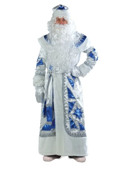 В комплект карнавального костюма северного Деда Мороза входят шуба, шапка и борода, а также пояс и варежки.