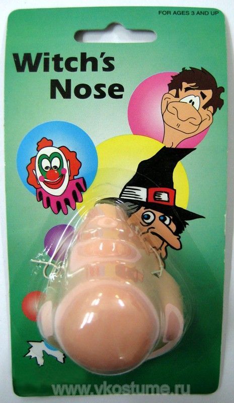 Прекрасный аксессуар для празднования Хэллоуина. Нос ведьмы короткий из пластика на блистере.