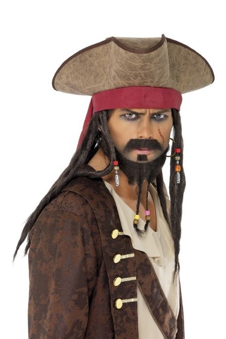 Комплект сурового пирата состоит из шляпы и волос-дредов. Комплект сурового пирата поможет вам создать образ Джека Воробья из известного фильма "Пираты Карибского моря".