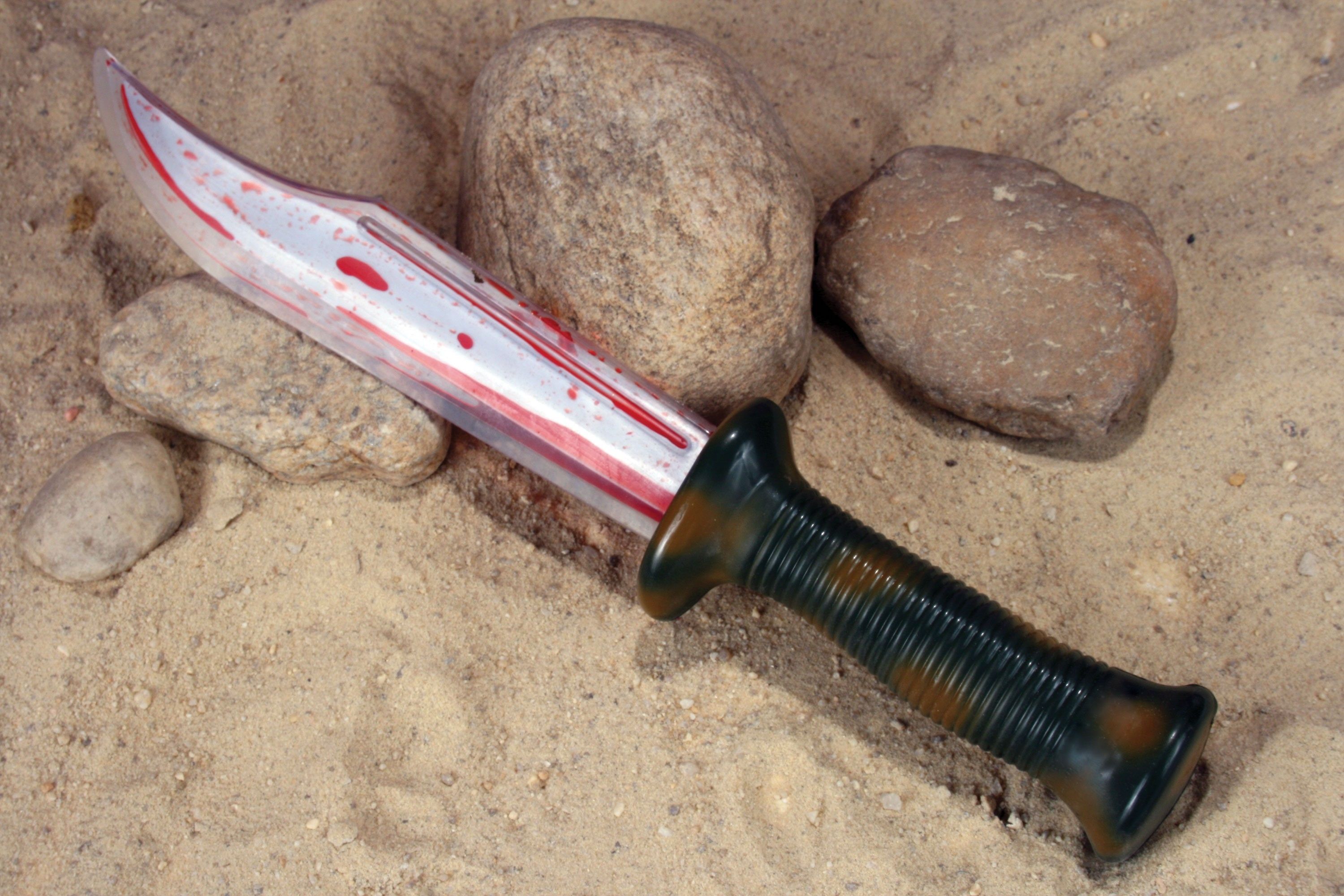 Кровавый нож выжившего - пластиковый прочный нож, лезвие которого выполнено из прозрачного двойного пластика, между которыми располагается искусственная кровь. Рукоятка выполнена в черном цвете с коричневыми потертостями.