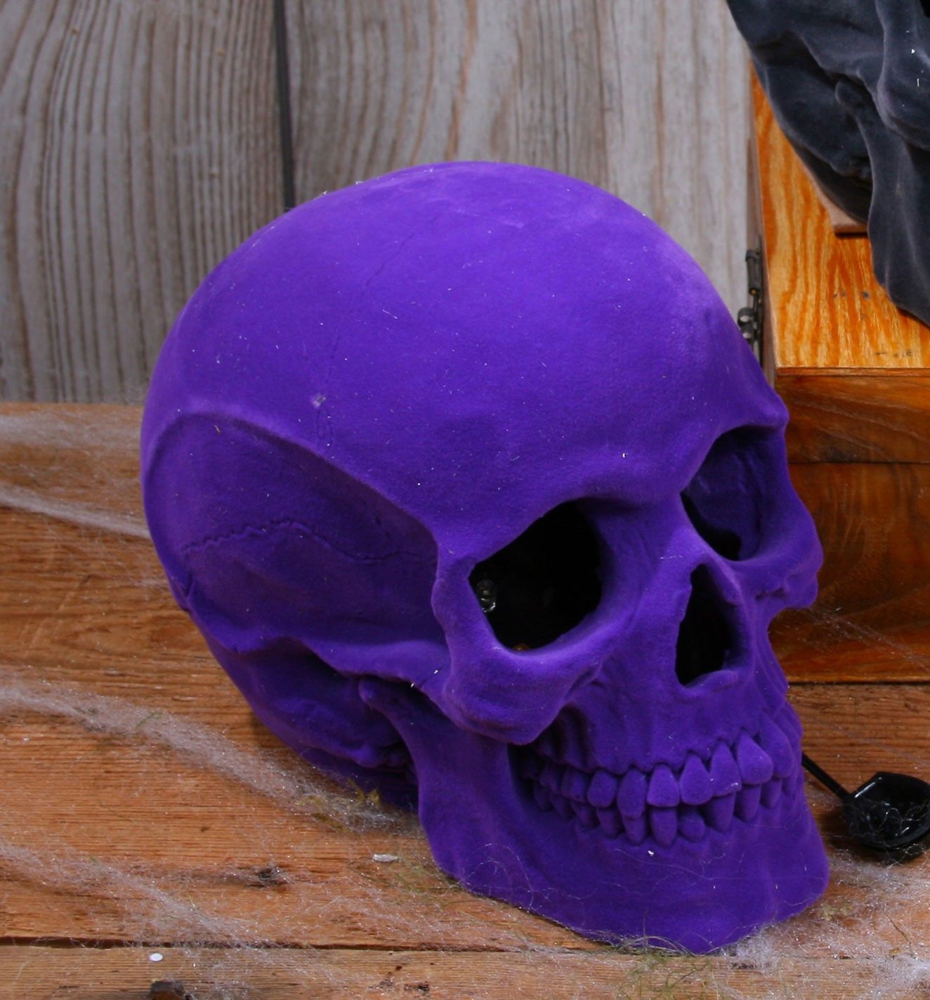 Череп с напылением фиолетовый - это декоративная фигурка, которая идеально украсит ваш дом на Хэллоуин или в Пятницу 13. Череп покрыт фиолетовым замшевым напылением.