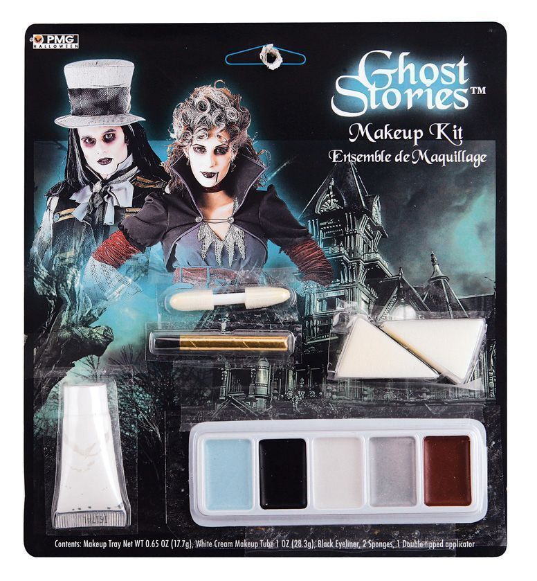 Грим Призрачные истории - это набор, в котором имеется лоток с косметикой, губки и аппликатор. Такой грим подойдёт для маскарадов, карнавалов, выступлений и подобных мероприятий.