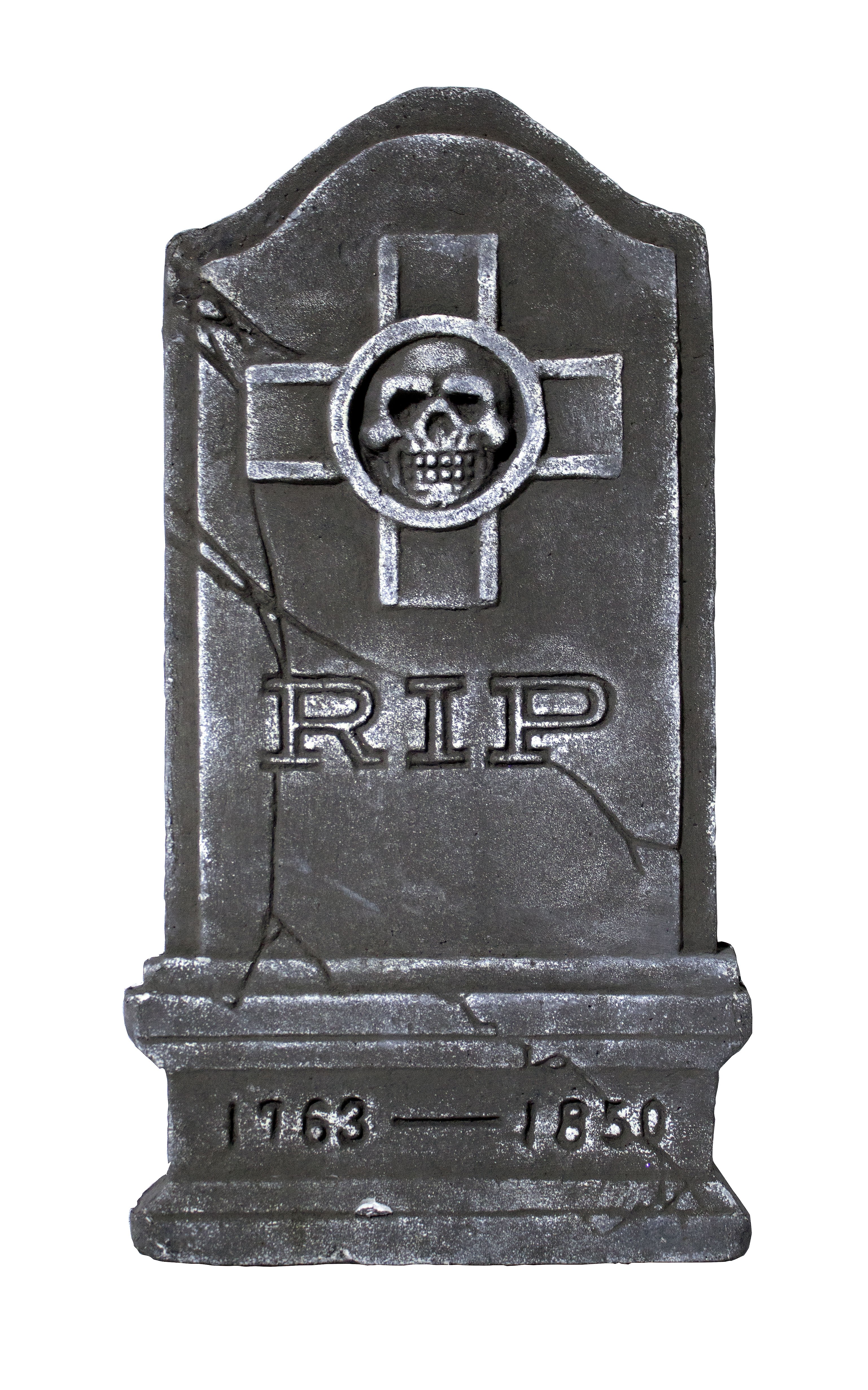 Надгробие Череп в кресте - отличная декорация для Хэллоуина и подобных праздников. Надгробие выполнено из пенопласта цвета темно-серого камня. Надгробие с изображением черепа в кресте и надписью RIP.