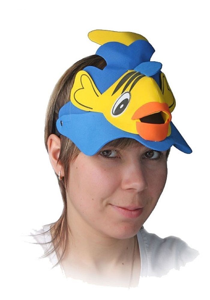 Козырек с рыбкой сделает вас настоящей звездой любого праздника, ведь каждый захочет подойти к вам и попросить исполнить хотя бы одно желание. Козырек изготовлен из мягкого пластика и имеет размер 18х15х18 см.