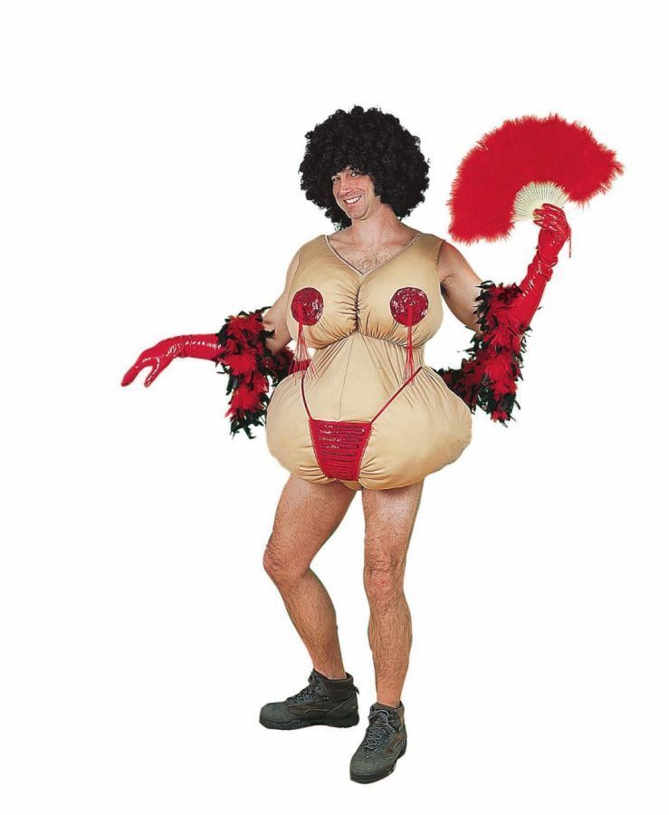 Костюм мужчины-стриптизерши - это боди, выполненное в виде пышного тела девушки в красных стрингах и с накладками на сосках. Такой костюм подойдёт для тематических вечеринок и других мероприятий. Дополните свой образ боа, веером и перчатками из ассортимента нашего сайта.