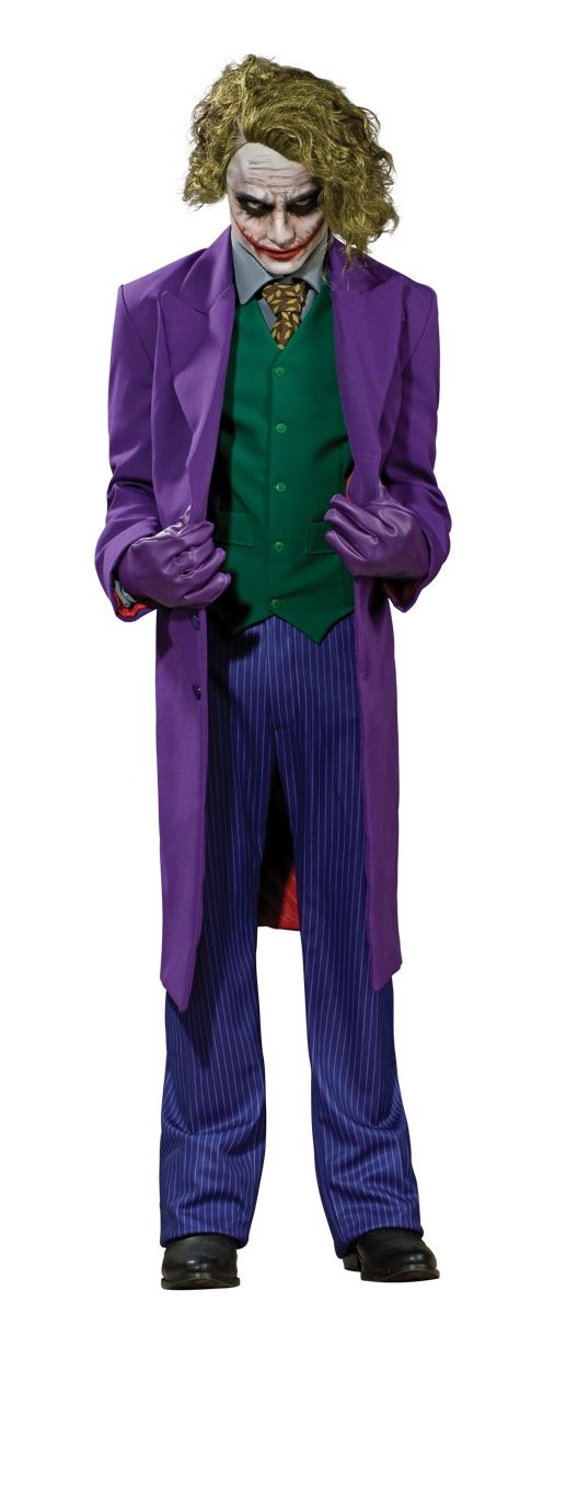 Костюм Джокера - это яркий костюм Джокера - персонажа многих комиксов и фильмов. Комплект костюма включает в себя длинный фиолетовый плащ, зеленую яркую жилетку, серую рубашку с галстуком, яркие синие брюки в тонкую полоску и фиолетовые кожаные перчатки. Образ завершает набор для грима Джокера и парик.