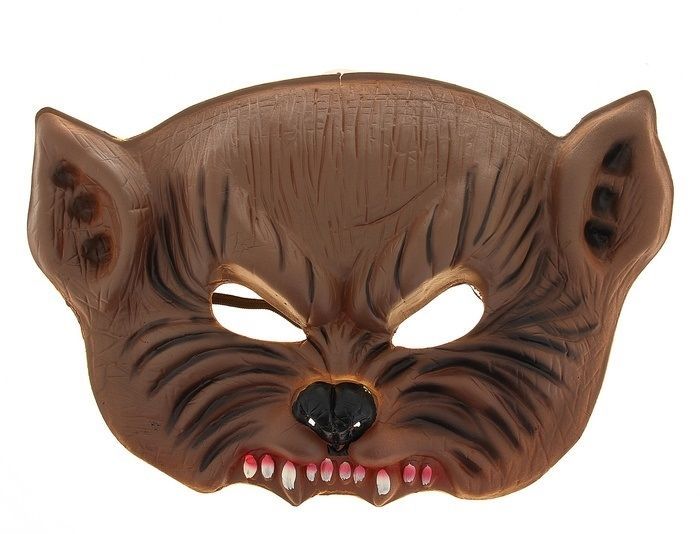 Маска летучей мыши коричневого цвета с кровавым оскалом. Маска сделана из мягкого пластика и имеет размер 32х22 см.
