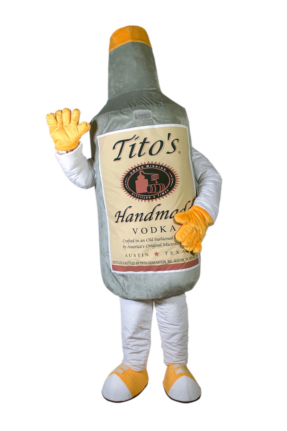 В комплекте белые брюки, обувь, нарукавники, желтые перчатки и туника, выполненная в форме бутылки.