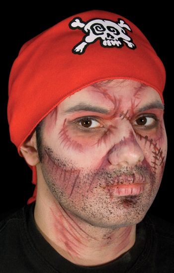 Макияж для трупа пирата прекрасно дополнит образы и костюмы пиратов. В наборе имеются крема серого, фиолетового, красного и чёрного цветов. С помощью этих цветов можно создать жуткий грим пирата, который уже давно и не мёртв, и не жив.