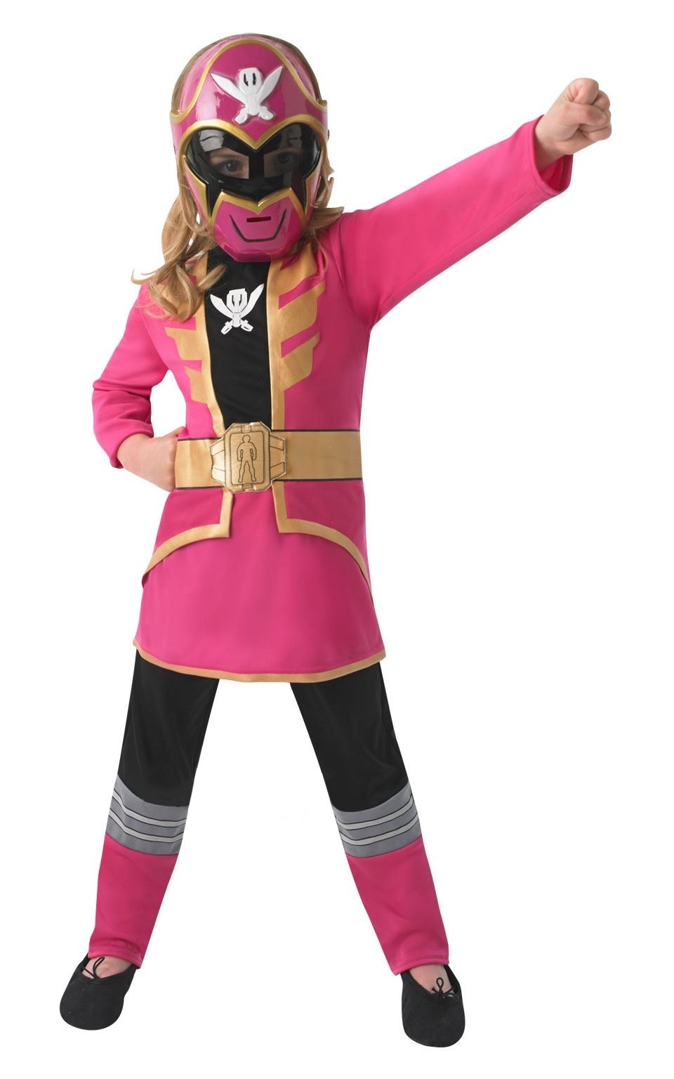 Детский костюм Рейнджера Кимберли - яркий костюм могучего Рейнджера в розовом, который включает в себя пластиковую маску с полупрозрачной вставкой на глазах. Также в комплекте розовая туника с принтом и черно-розовые брюки.