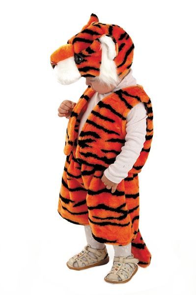 Детский карнавальный костюм полосатого тигренка. Этот костюм отлично подойдет для мальчиков, которые обожают экзотических животных. Также костюм можно использовать для детского театрализованного представления.