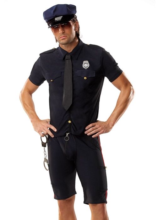 Мужской карнавальный костюм полицейского сделает вас защитником правопорядка на любой карнавальной вечеринке. В костюм полицейского входит рубашка с галстуком, шорты с передней молнией, наручники.