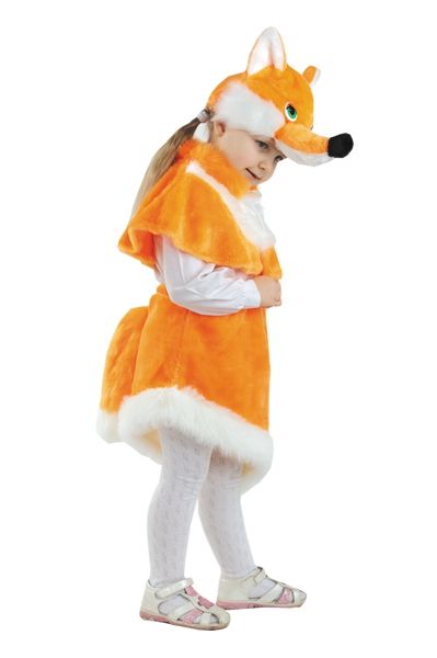 В комплекте костюма лисочки Алисочки имеется оранжевая юбочка с хвостом, пелерина и маска лисы.