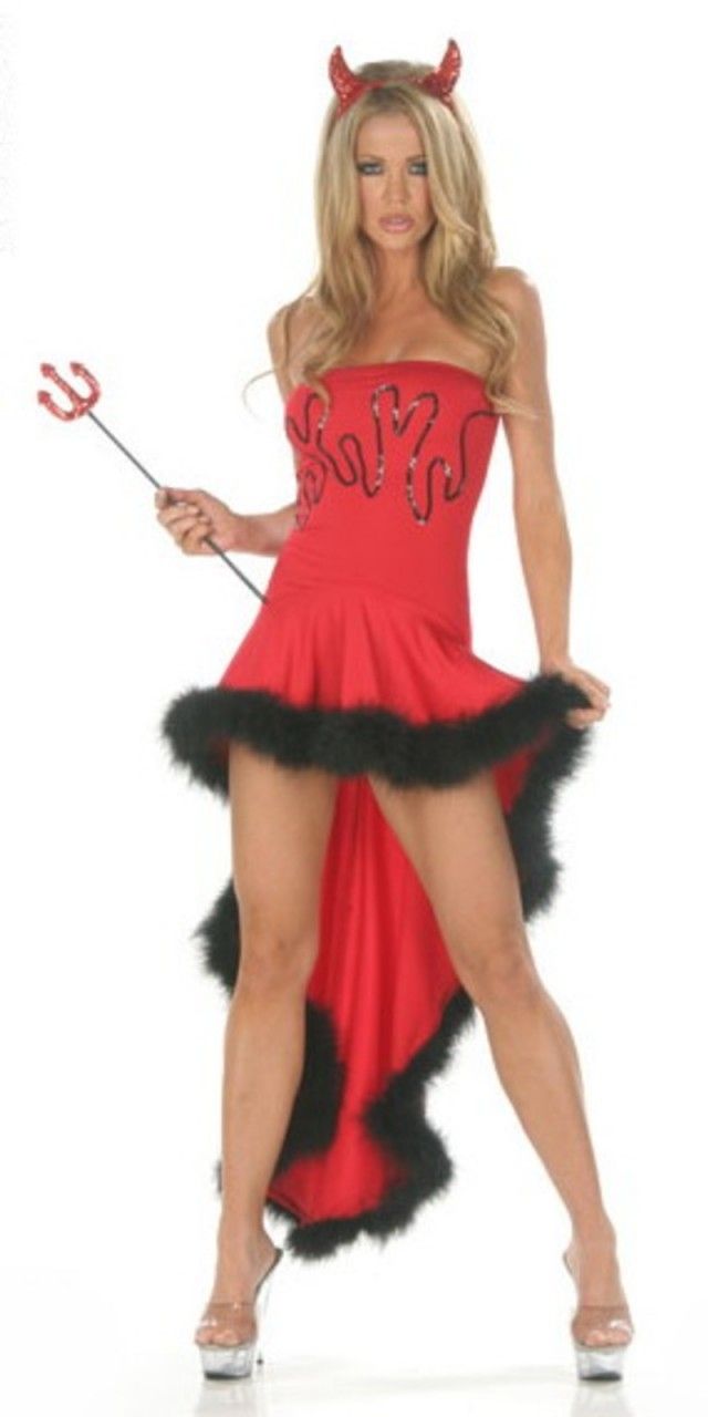 Супер костюм для Хэллоуина - костюм соблазнительной дьяволицы! В нем вы будете просто неотразимой нечистью на вечеринке в канун для всех святых. В костюм соблазнительной дьяволицы входит платье, рожки, трезубец.
