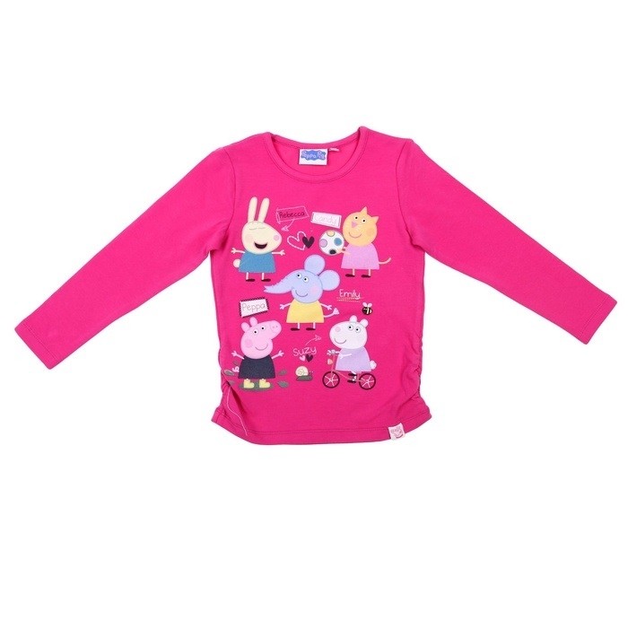 Ярко-розовая футболка Свинка Пеппа - детская футболка с длинным рукавом, украшена яркими принтами в виде героев мультфильма про Свинку Пеппу.
