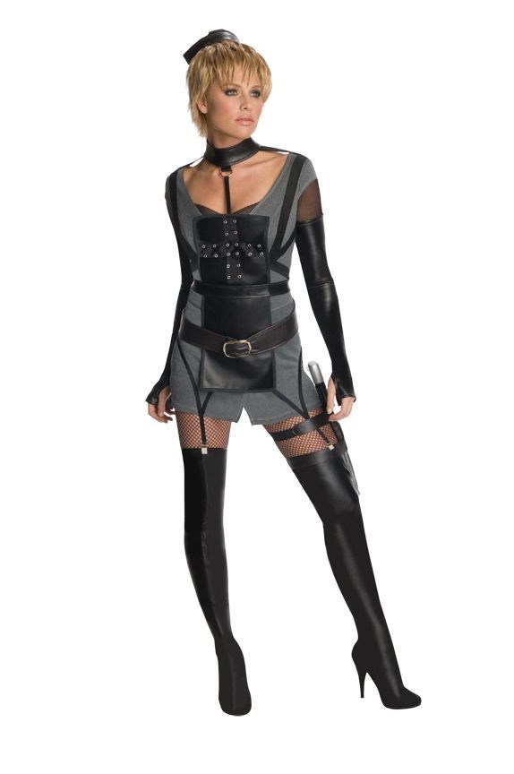 Костюм Ракеты Запрещенный прием (Sucker Punch) - это серый костюм девушки Ракеты из фильма "Запрещенный прием". Костюм включает в себя серое платье с черными вставками и пришитыми подвязками, головной убор, длинные перчатки без пальцев и черный пояс.