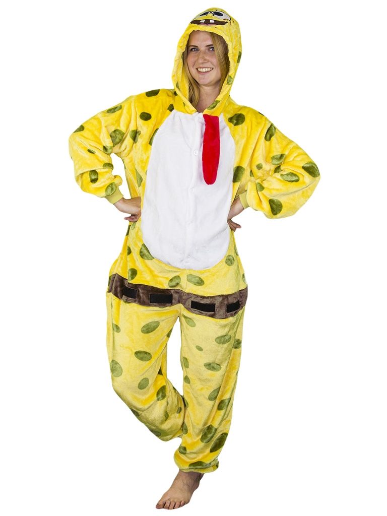 Кигуруми Губка Боб с капюшоном и кармашками, мягкий и пушистый, подойдет в качестве теплой и комфортной домашней одежды, а также для вечеринок, флешмобов и других праздников.