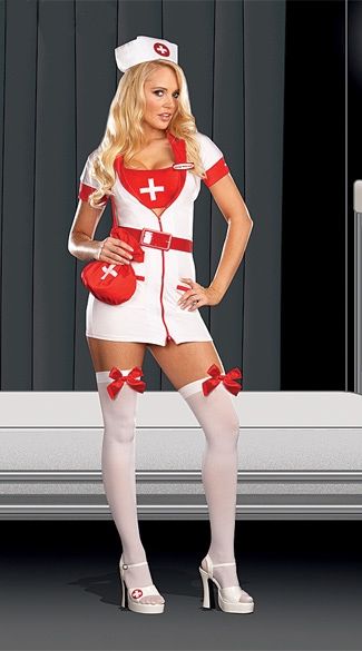 Превосходный, сексуальный и действительно горячий костюм медсестры. Осторожней пациенты, смотрите не обожгитесь об такую штучку. В костюм входит платье на 2-х сторонней молнии, пояс, топ с крестом и шапочка медсестры. Обязательно купите чулочки медсестры и стетоскоп, чтобы лучше диагностировать больных.