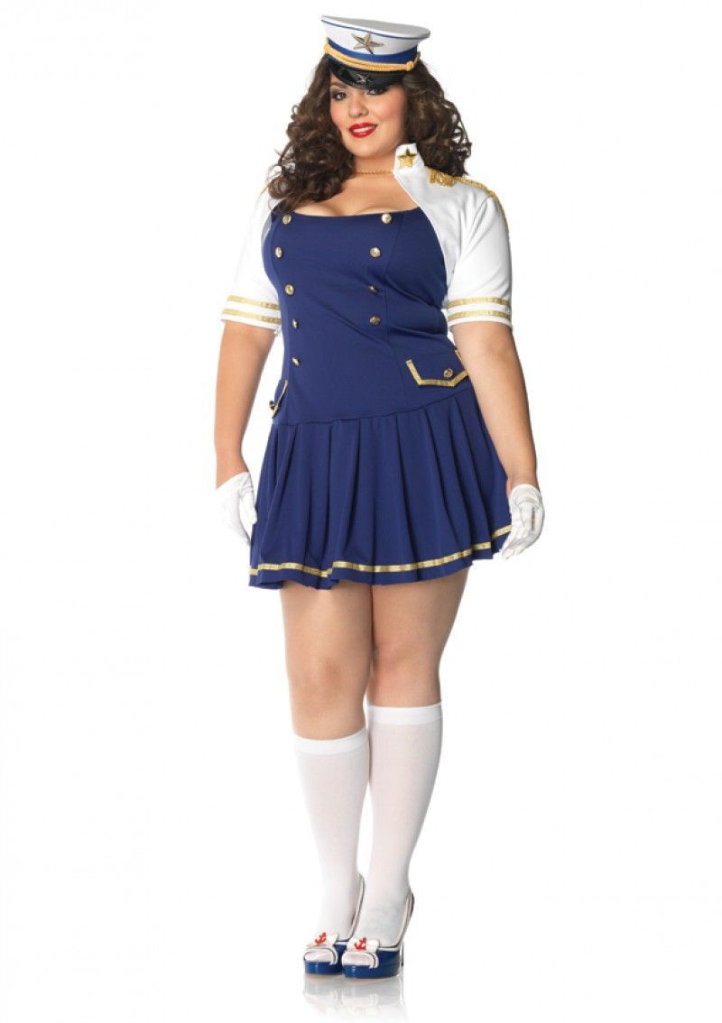 Костюм капитанши корабля XL включает в себя голубое платье с золотой отделкой с плиссированной юбочкой, а также белое болеро с эполетами. Туфли, козырек и прочие дополнительные вещи можно приобрести отдельно.