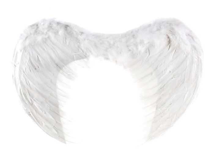 Крылья ангелочка из перьев белого цвета для празднования Рождества, Нового года и других маскарадных вечеринок. Размер крыльев 55х40 см.