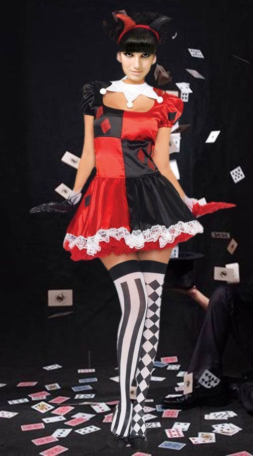 Поднять настроение своим близким и коллегам вам поможет костюм жизнерадостного Арлекино. Черно-красное коротенькое платье с белой кружевной окантовкой и рожки на голове способны вызвать улыбку окружающих. Костюм можно надеть не только на корпоратив или тематическую вечеринку, но и День рождение ребенка и развеселит маленьких гостей. Для полноты образа советуем приобрести разноцветные чулки. В комплекте: платье, воротник, ободок, перчатки.