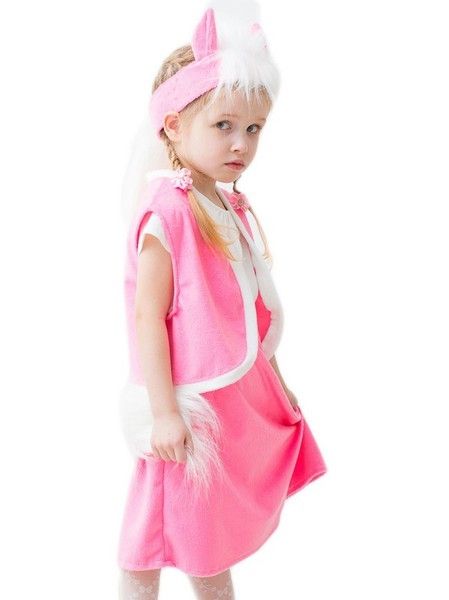 Розовый костюм Лошадки представляет собой яркий плюшевый костюм, в комплект которого входит шапочка с белой гривой, юбка до колена, а также безрукавка с белой меховой отделкой.