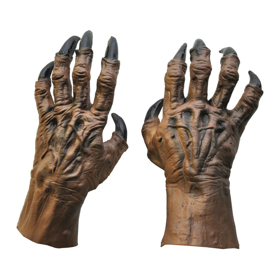 Коричневые руки оборотня прекрасно дополнят любой костюм оборотня или чудовища. Руки выполнены в коричневом цвете из латекса. Морщинистые руки с чёрными когтями - весьма жуткое зрелище.
