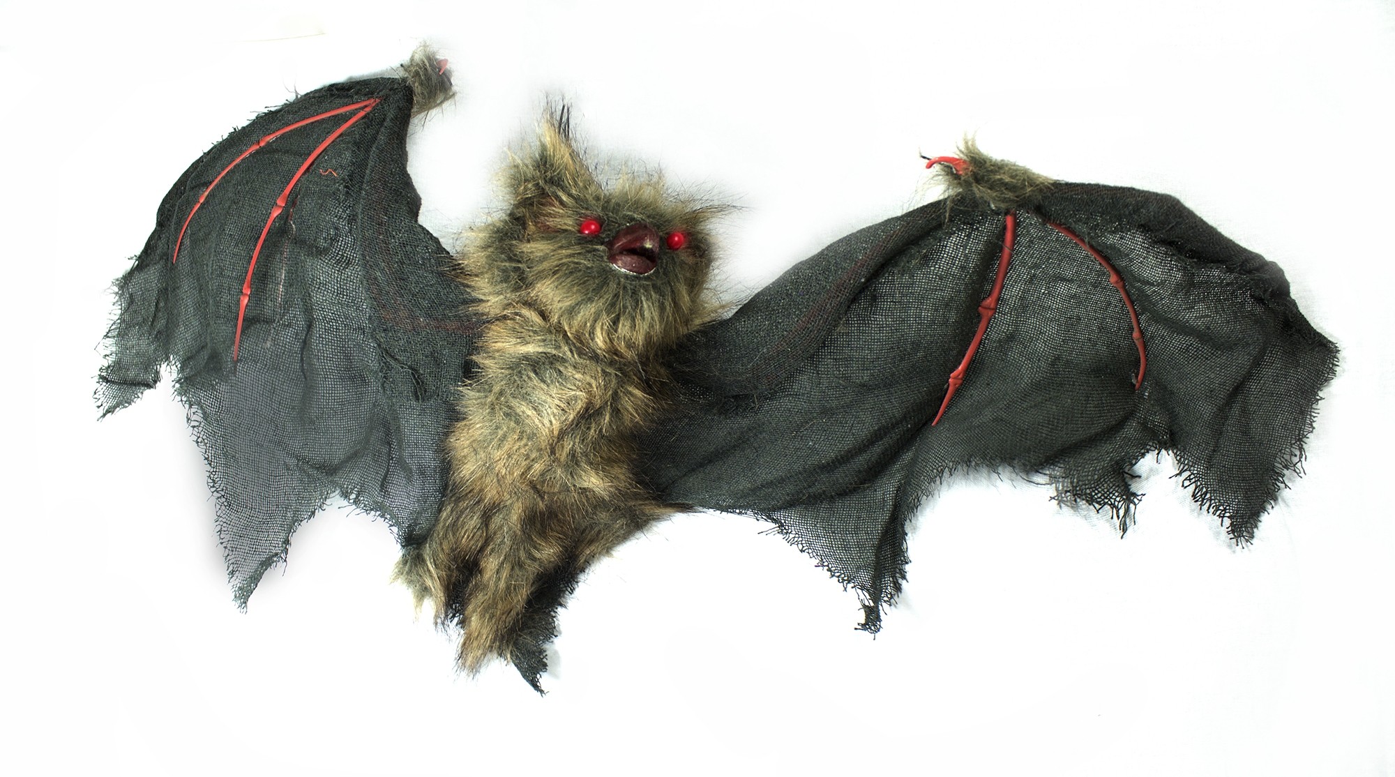Подвесная летучая мышь отлично подойдет для украшения помещений на Хэллоуин и подобные праздники. Летучая мышь выполнена из мягкого мехового материала с крыльями из марлевого материала.