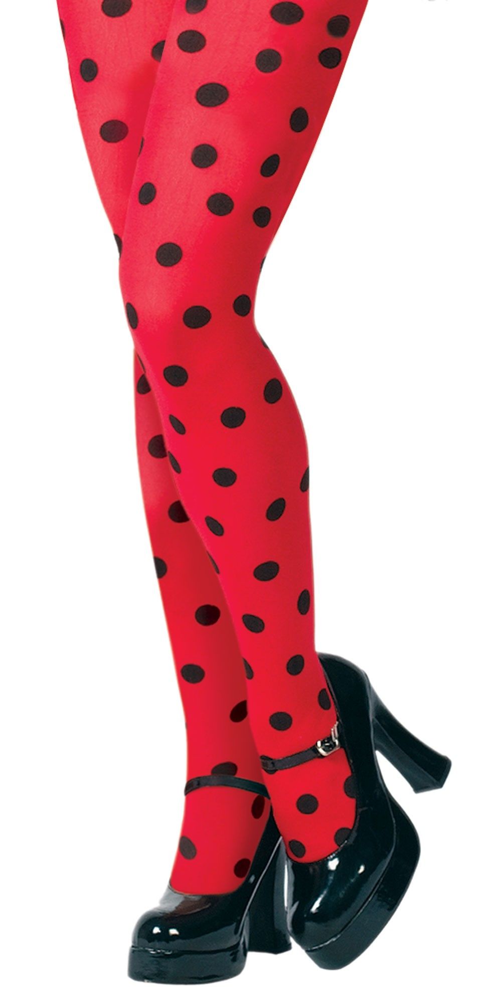 Колготки Божья коровка - это взрослые колготки ярко-красного цвета в крупный черный горох. Колготки выполнены из эластичного материала. Подойдут в качестве дополнения к костюму Божьей коровки.