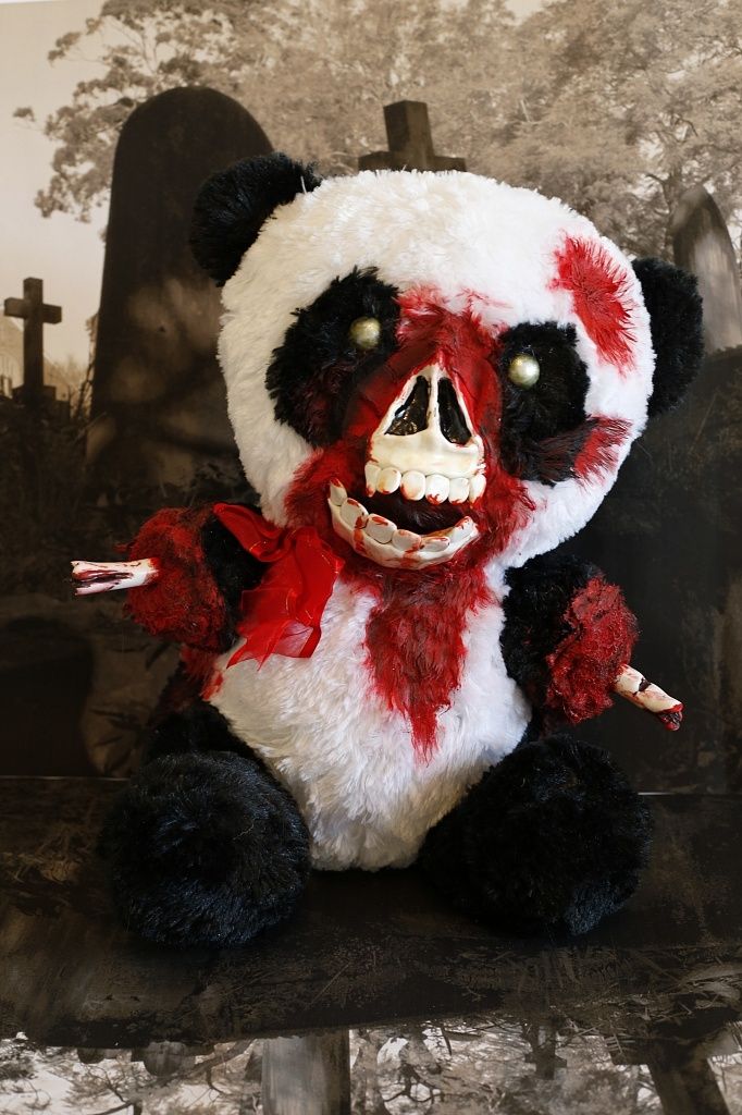 Ослепшая зомби-панда - ужас, восторг - это именно те эмоции, которые будут испытывать люди, при виде этой игрушки. У плюшевой панды-зомби отсутствуют обе лапы, а из оставшихся частей торчат окровавленные косточки. На морде отсутствует часть меха и кожи, из-за чего видна кость и панда становится еще более ужасающей! Кровавые пятна добавляют жутких эмоций.