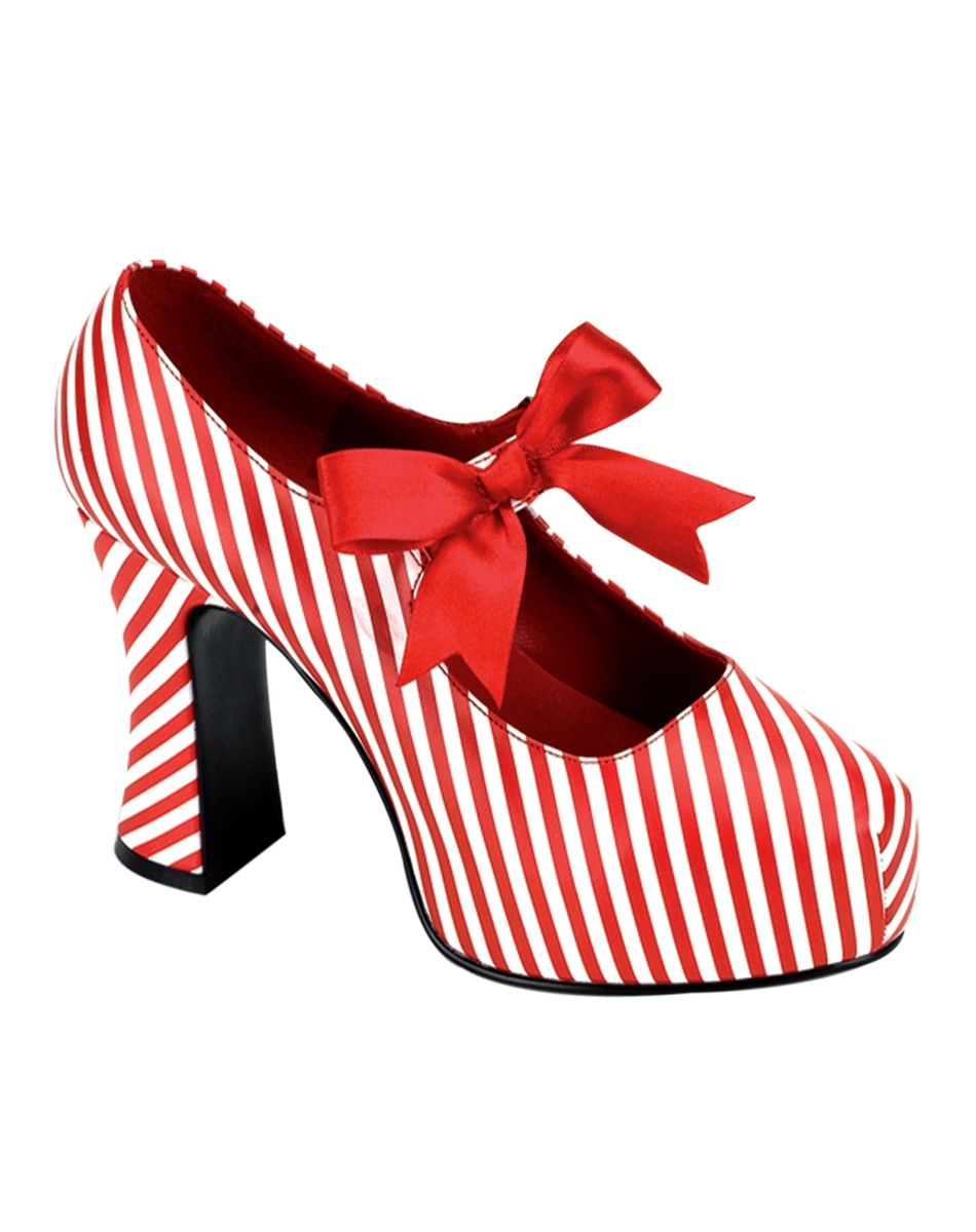 Туфли карамельки, эксцентричного, красного с белым в полоску цвета, дополнят клубные, гламурные, ретро и другие схожие наряды.Рекомендации по уходу: Только чистка по месту загрязнения.