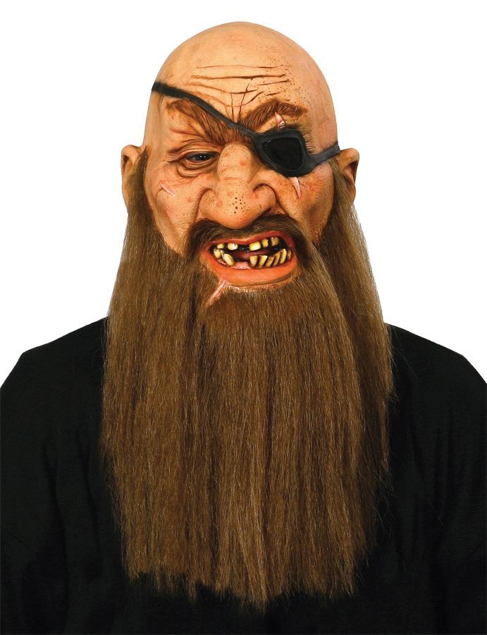Маска бородатого пирата выполнена весьма реалистично. Морщинистый лоб, повязка на глазу, полуоткрытый рот с кривыми зубами и длинная борода. Такая маска прекрасно дополнит ваш костюм пирата, в ней вы будете неузнаваемы.