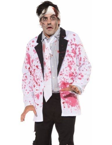 Кровавый пиджак с черными лацканами и принтом в виде брызг крови. Судя по всему вы стали свидетелем, а может и непосредственным участником кровавой расправы. Пиджак станет отличным выбором для празднования Хэллоуин или Пятница 13.