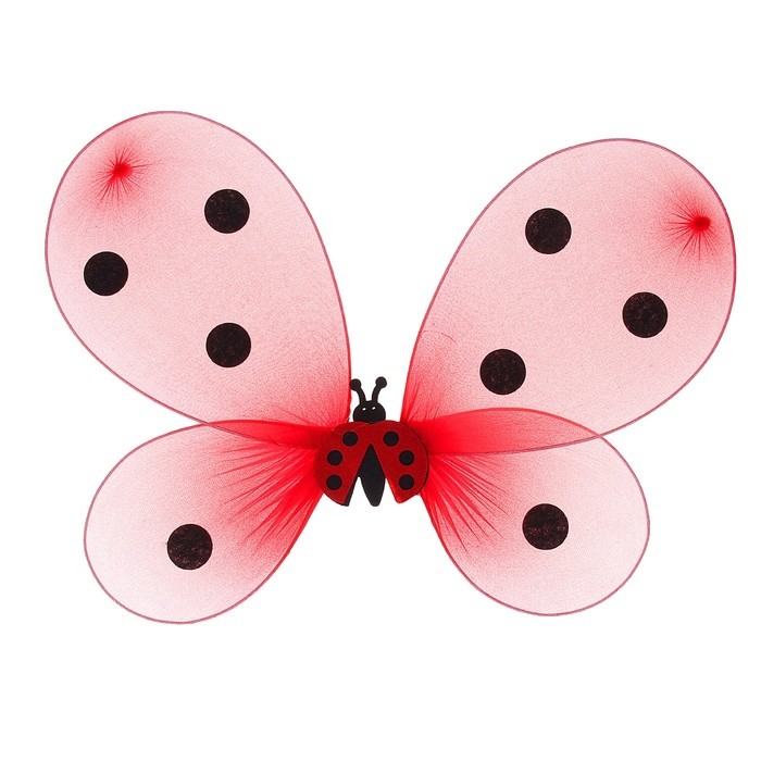 Крылья божьей коровки - воздушные красно-черные двойные крылья, украшенные аппликацией в виде божьей коровки. Крылья крепятся с помощью специальных завязок.