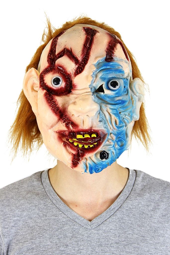 Латексная маска Чакки позволит легко перевоплотиться в образ куклы с душой маньяка-убийцы. Чаки- кукла из знаменитой серии фильмов ужасов. Для большей достоверности образа можно докупить оружие.
