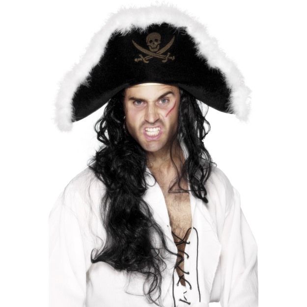 Пиратская шляпа Марабу с изображением черепа и костями. Отличное дополнение к пиратским костюмам.