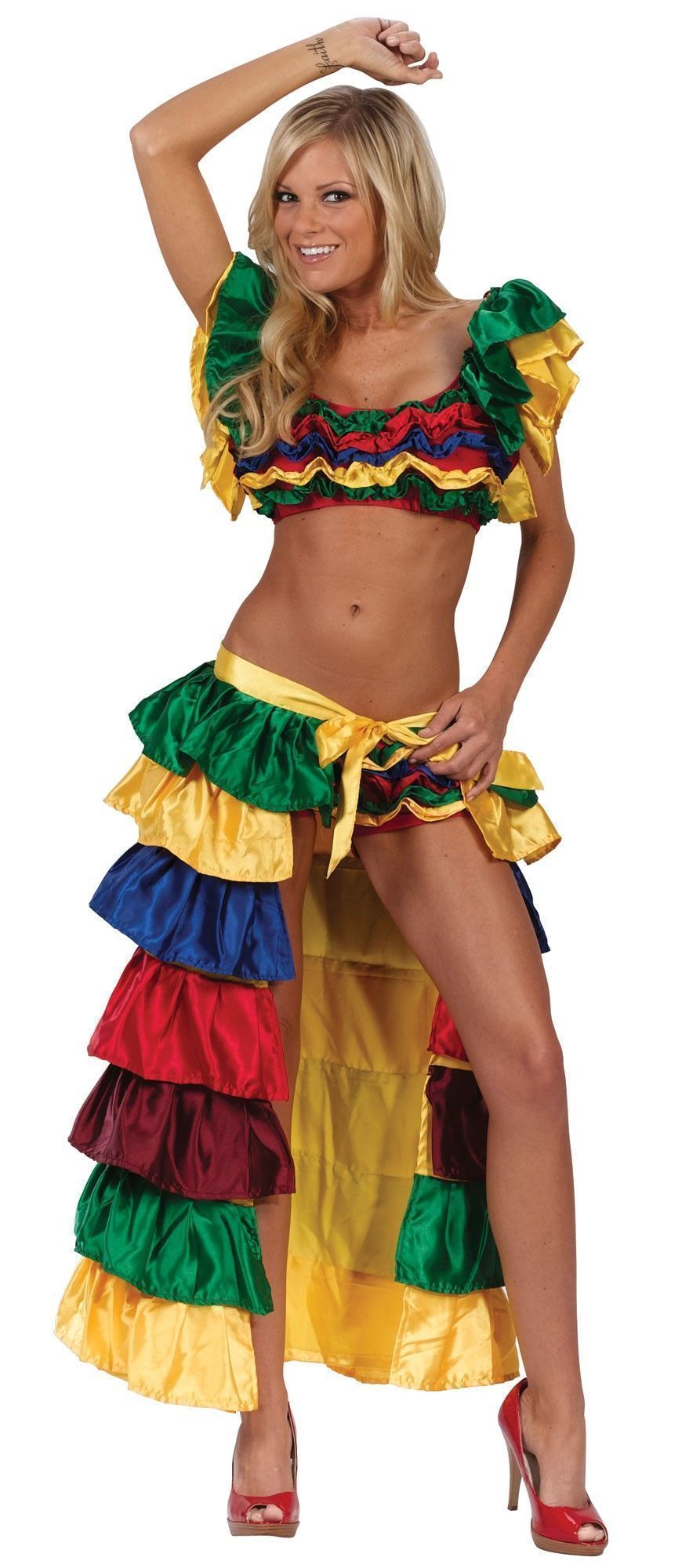 Позитивный наряд для любительниц "солнечных" бразильских ритмов. В комплекте: топ, шортики и юбка.(Прочие аксессуары для дополнения образа вы также найдете в нашем каталоге).Рекомендации по уходу: Только чистка по месту загрязнения.