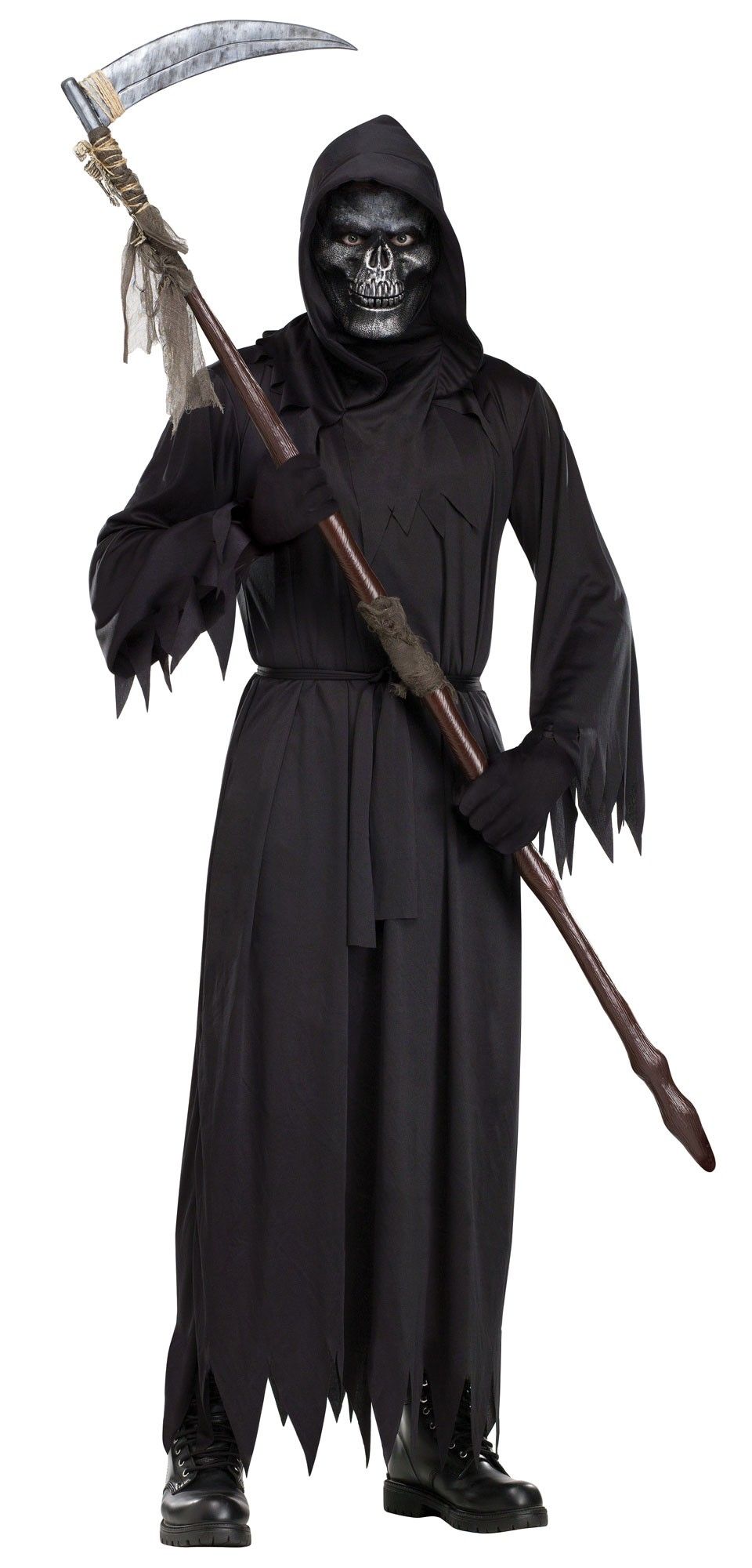 Костюм Демон Судьбы состоит из длинного черного одеяния с зубчатыми краями, капюшона с воротником, пояса и черных перчаток. Жуткий образ завершает маска на пол лица в виде черепа.