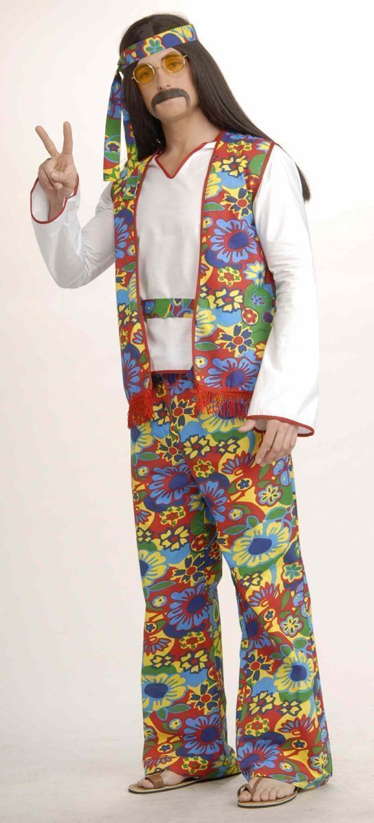 Взрослый карнавальный костюм яркого парня-хиппи отличный выбор для карнавальной, тематической или просто любой костюмированной вечеринки. В этом костюме вы обязательно будете в центре всеобщего внимания. В комплект карнавального костюма яркого парня-хиппи входят штаны, рубашка, пояс, жилетка и повязка на голову.