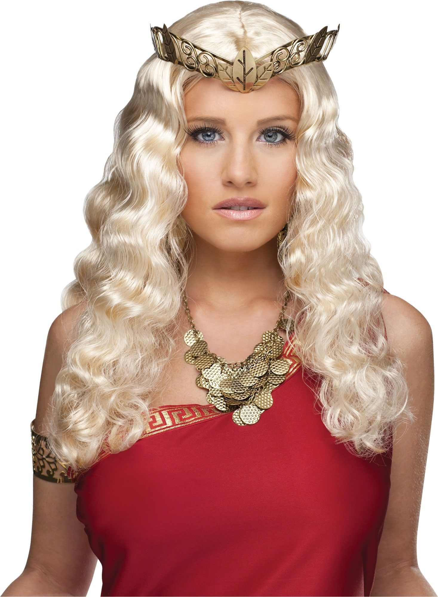 Парик Венеры блонди хорошо дополнит различные костюмы Богини Венеры. Парик выполнен из искусственных длинных светлых вьющихся волос. Волосы кажутся легкими и шелковистыми, блестят на свету.