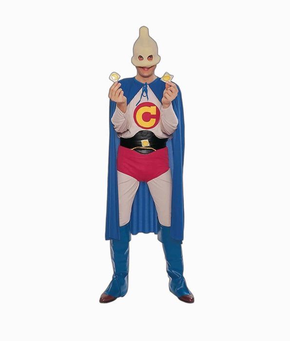 Взрослый карнавальный костюм капитана Кондома. Этот костюм отлично подойдет для любой карнавальной или тематической вечеринки, а также для офисного корпоратива. В этом костюме вы обязательно посмешите и порадуете своих друзей. В комплект карнавального костюма капитана Кондома входит головной убор, плащ, штаны, кофта, пояс и сапоги.