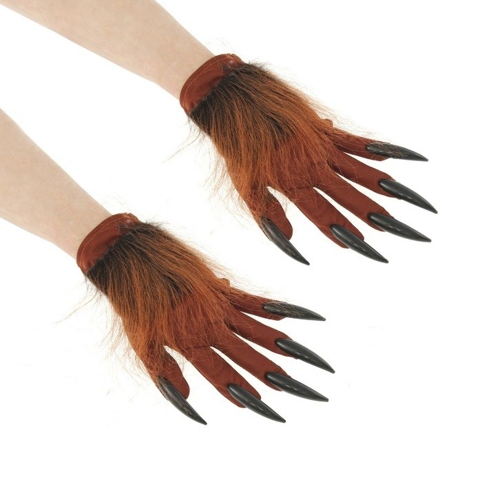 Коричневые перчатки с когтями могут стать отличным дополнением образа оборотня. Перчатки украшены коричневым искусственным мехом и черными накладными когтями.